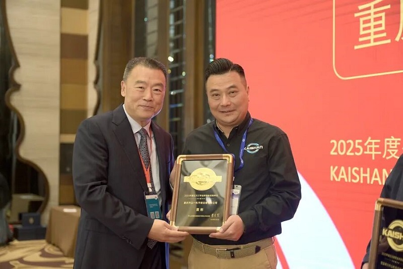 本屆大會按慣例,為34家優秀經銷單位頒發了獎牌。與以往不同的是,其中十家經銷單位因為連續五年獲評“最佳經銷單位”,獲頒特制銀質獎章。宜昌博力開山機電設備有限公司和重慶開山一機節能設備有限公司因為2025年度銷售/訂單突破億元,首次獲頒金質獎章。其中宜昌博力已連續三年銷售過億元,主要銷售開山重工的全液壓鉆車機系列高端產品。重慶開山一機則銷售包括干式無油螺桿空壓機、大功率螺桿空壓機、變節距干式真空泵、離心式壓縮機等高端產品。公司祝賀并感謝這兩家公司在幫助開山拓展高端市場取得的突出成就。曹董號召全體經銷單位以他們為榜樣,冀望有更多的銷售超億元經銷單位涌現。