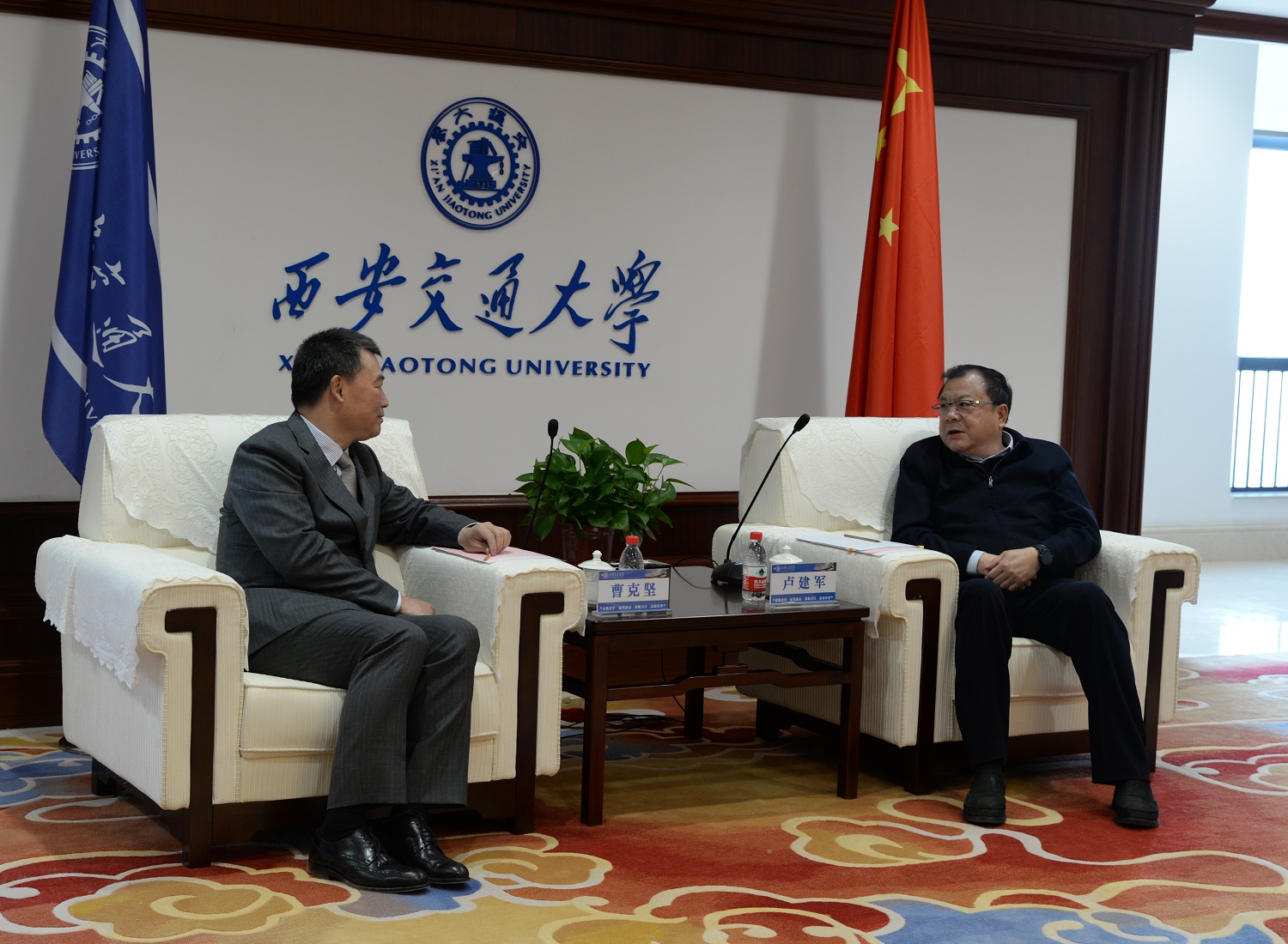 簽約儀式前,陜西省委常委、西安交大黨委書記盧建軍接見(jiàn)了參加簽約的有關(guān)人員。在長(zhǎng)達(dá)一個(gè)小時(shí)的接見(jiàn)中,盧書記就如何將高??蒲谐晒a(chǎn)業(yè)化,打通“產(chǎn)學(xué)研合作壁壘”對(duì)企業(yè)提出了希望,勉勵(lì)開(kāi)山要把“企業(yè)當(dāng)事業(yè)經(jīng)營(yíng)”,希望合作取得切實(shí)的成果。曹克堅(jiān)董事長(zhǎng)向盧書記簡(jiǎn)要匯報(bào)了開(kāi)山股份15年來(lái)與西交大合作的成果,以及在合作過(guò)程中的心得體會(huì)。